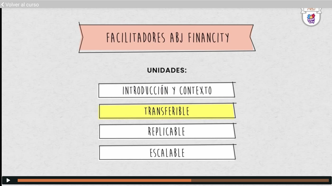 El curso online “Facilitadores ABJ FinanCity” es una instancia de formación aplicada orientada a docentes y profesionales del sistema educativo interesados en fortalecer la educación financiera a través del Aprendizaje Basado en Juegos (ABJ). El curso consta de 4 unidades formativas, que combinan cápsulas audiovisuales, orientaciones pedagógicas y experiencias prácticas de implementación, siendo estos sus aprendizajes esperados: