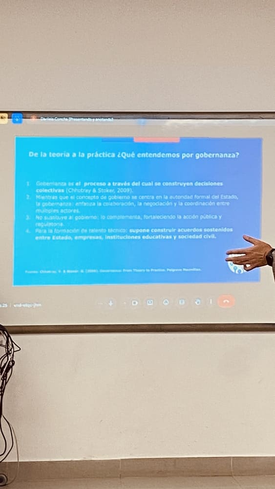 Esta instancia tuvo como propósito articular esfuerzos entre el sector productivo, educativo y gubernamental, con el objetivo de fortalecer la pertinencia y vinculación de las especialidades técnicas. En esta oportunidad, se contó con la presencia de representantes de la Secretaría Ejecutiva de Educación TP del nivel central, quienes entregaron los lineamientos y orientaciones para la instauración de la Gobernanza en la región.